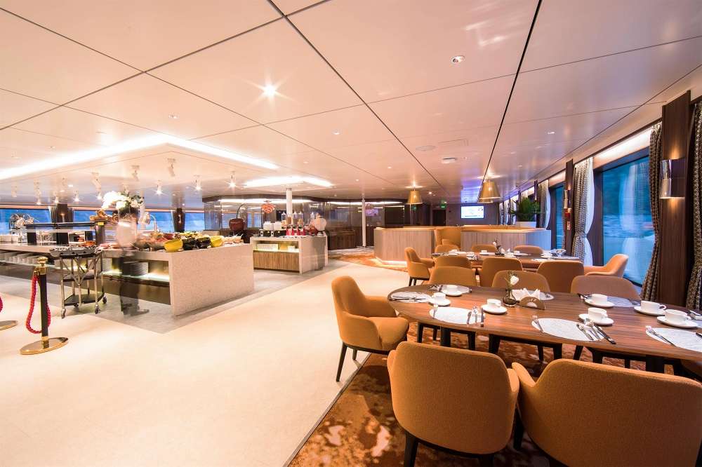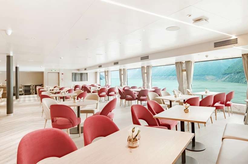 Благодаря установленным гибридным двигателям обеспечивается низкий уровень выбросов и пониженные вибрация и шум. Почти все каюты оборудованы собственными балконами.