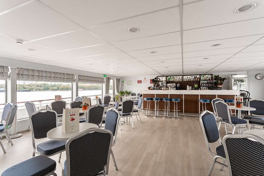 • Ужин – заказная система питания (выбор блюд со 2-го дня круиза). Включенные напитки (без ограничения): вода, чай, кофе. Кисломолочный напиток (1 стакан, 200 мл.) по запросу клиента. На выбор: вино красное / белое / игристое (1 бокал, 125 мл.) / водка (1 рюмка, 50 мл.) / пиво (1 бокал, 300 мл.) / домашний морс (1 бокал, 200 мл.). Фиксированная рассадка